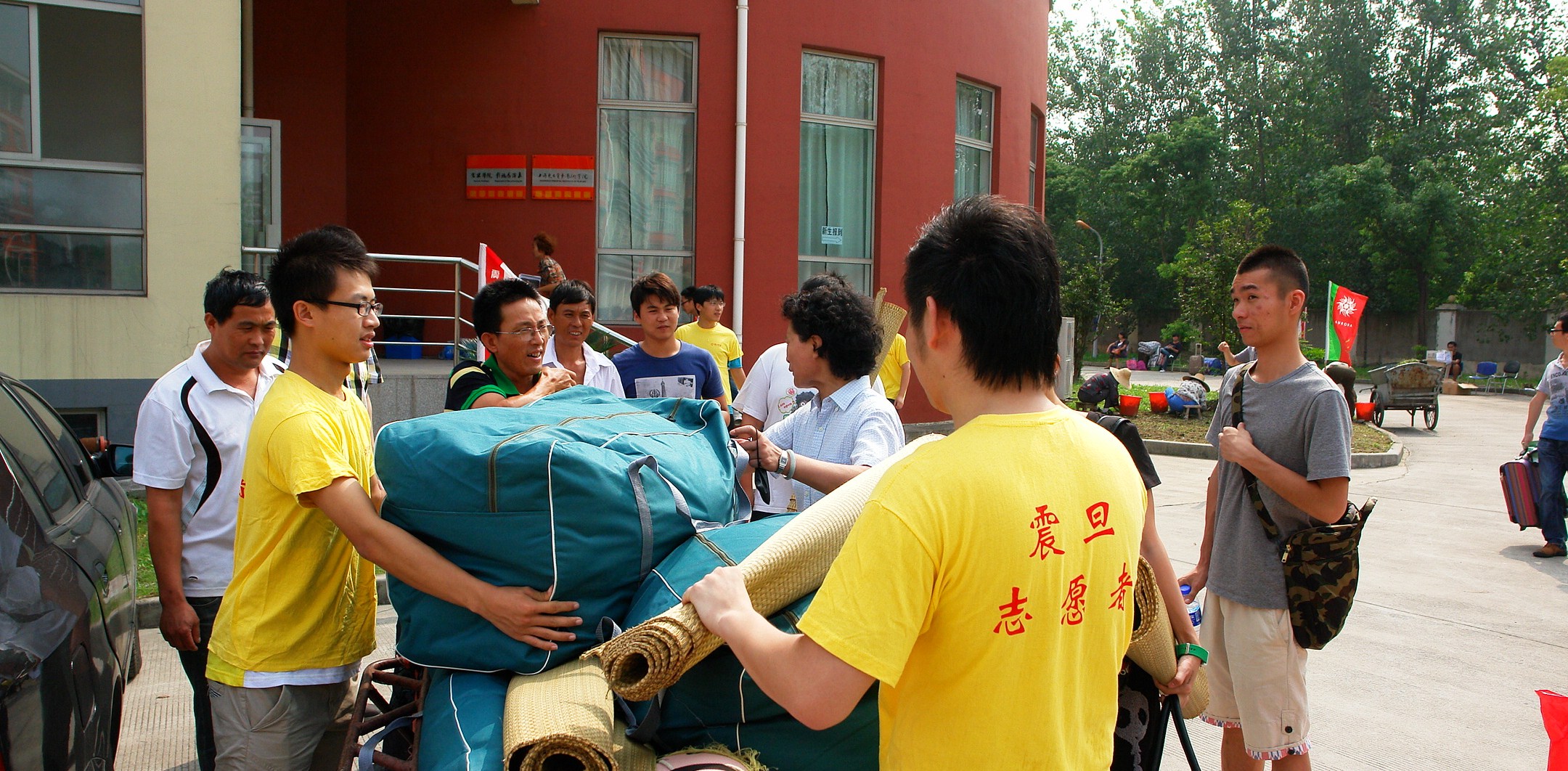 学院党政领导亲临现场,指导工作,并亲切回答新生及家长的咨询;志愿者们身穿统一的印有震旦志愿者的黄色T恤,穿梭在校园的各个角落,为新生们搬送行李,排忧解难;现场工作人员耐心解答,仔细帮助第一次来校的新生们能够及时顺利的找到报名注册地点和住宿寝室。
