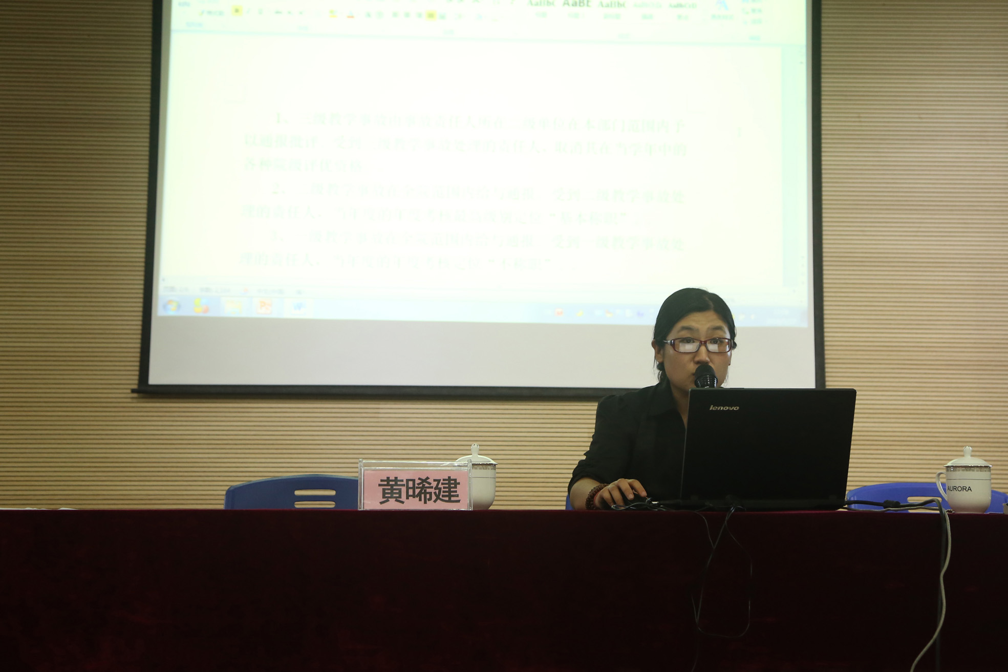 5月27日下午12:30在体艺楼会议中心召开我院2016年教学工作会议,学院党政领导、全体专兼职教师、辅导员、机关部处室管理人员及教辅人员出席,党委书记黄晞建主持此次会议。