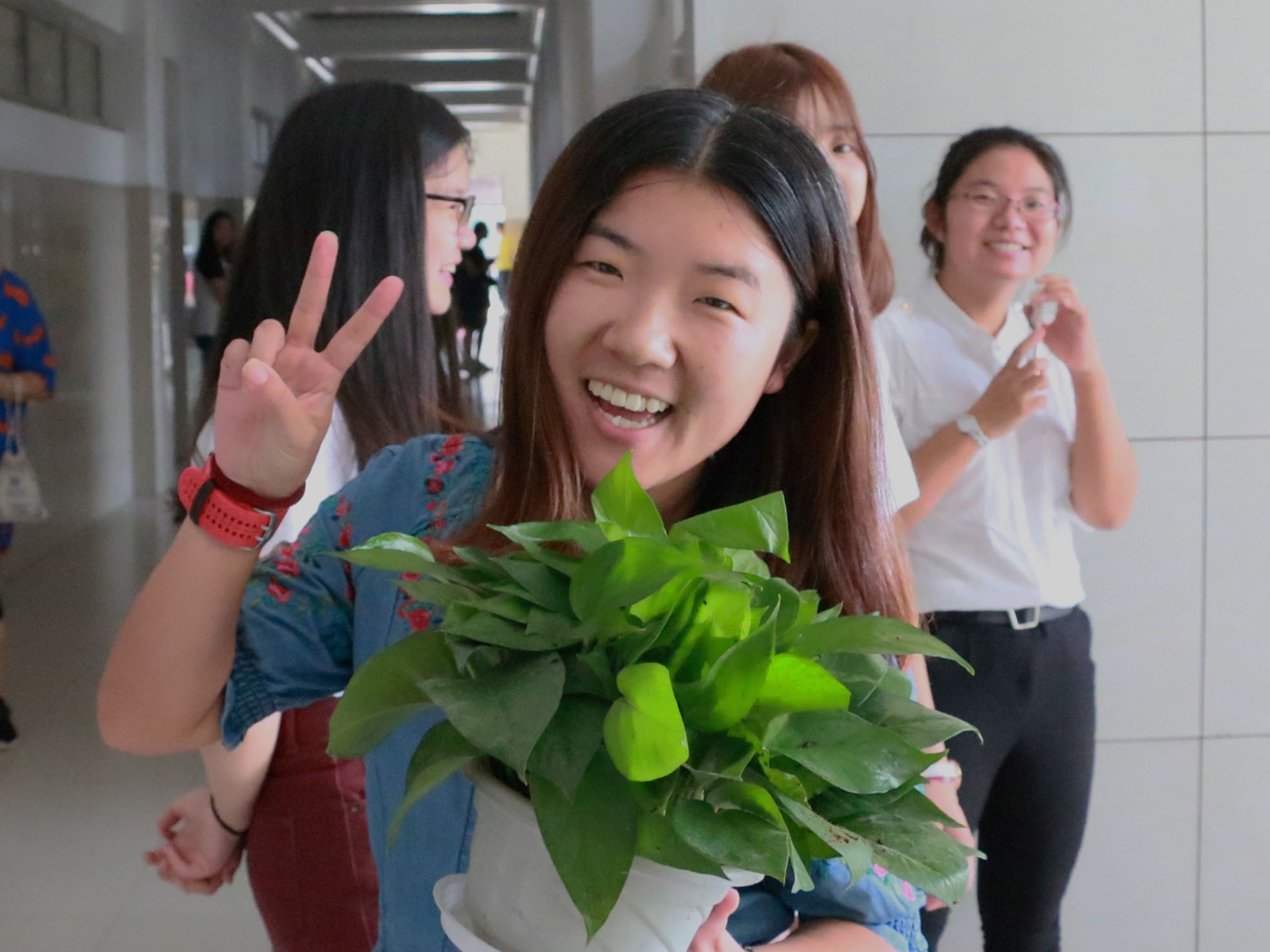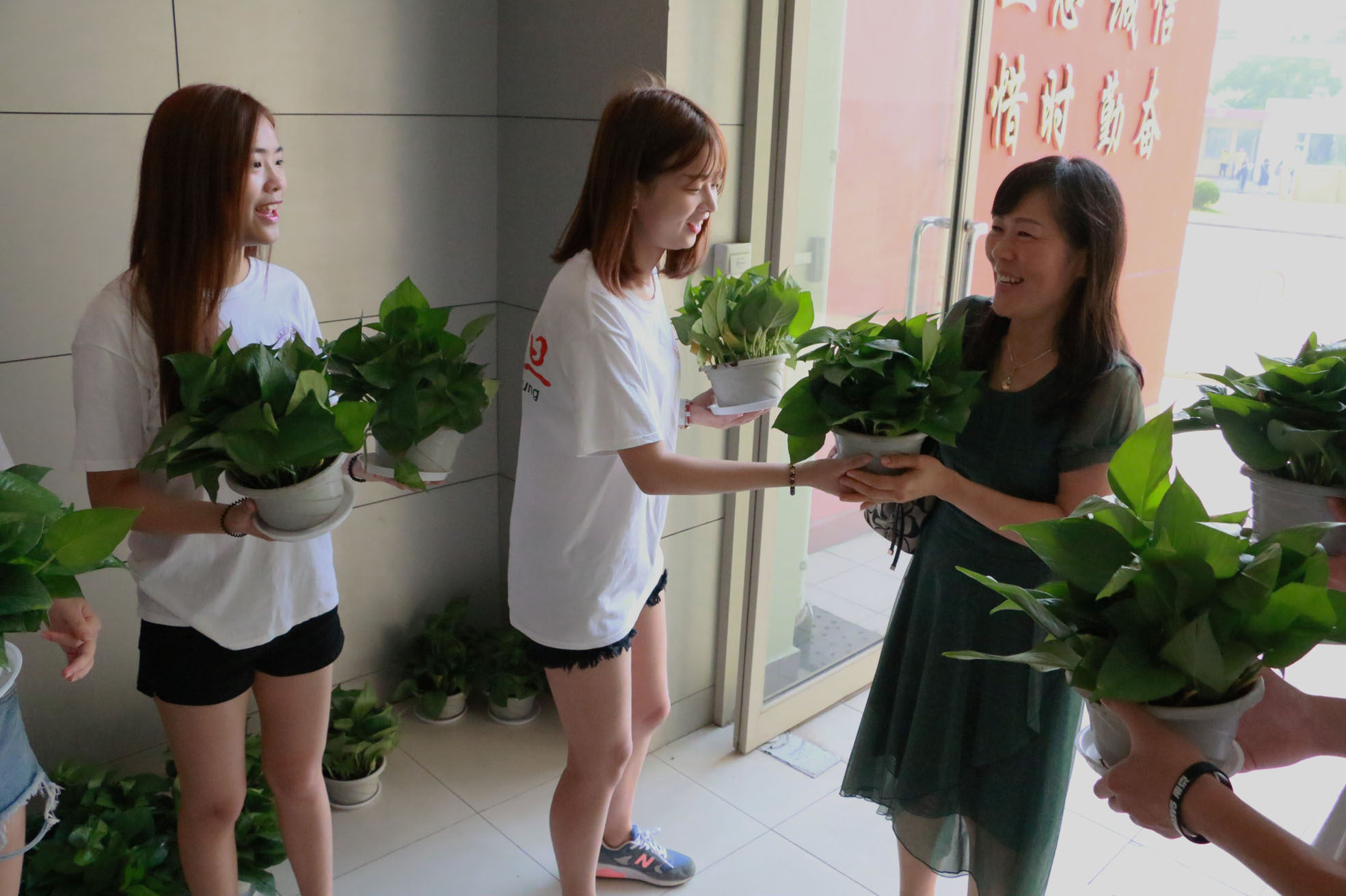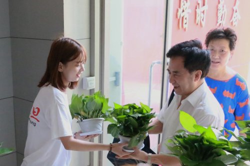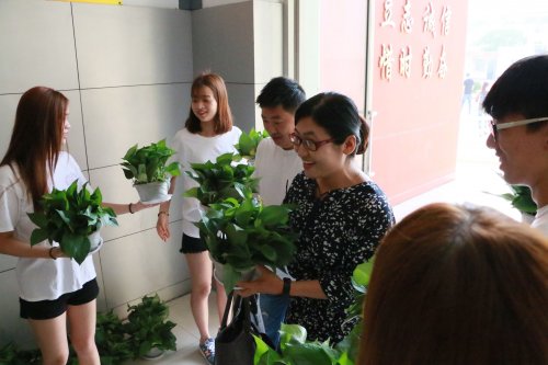 早上七点半,团委学生会的同学们穿上统一的着装,手捧绿萝排成两列整齐的站在了校门口,为每位到校的老师送上一份礼物:“老师教师节快乐,老师您辛苦了。”一句看似简单的问候,一份并不算贵重的礼物,却代表着全体震旦学子的心意,温暖着我们的老师的心。