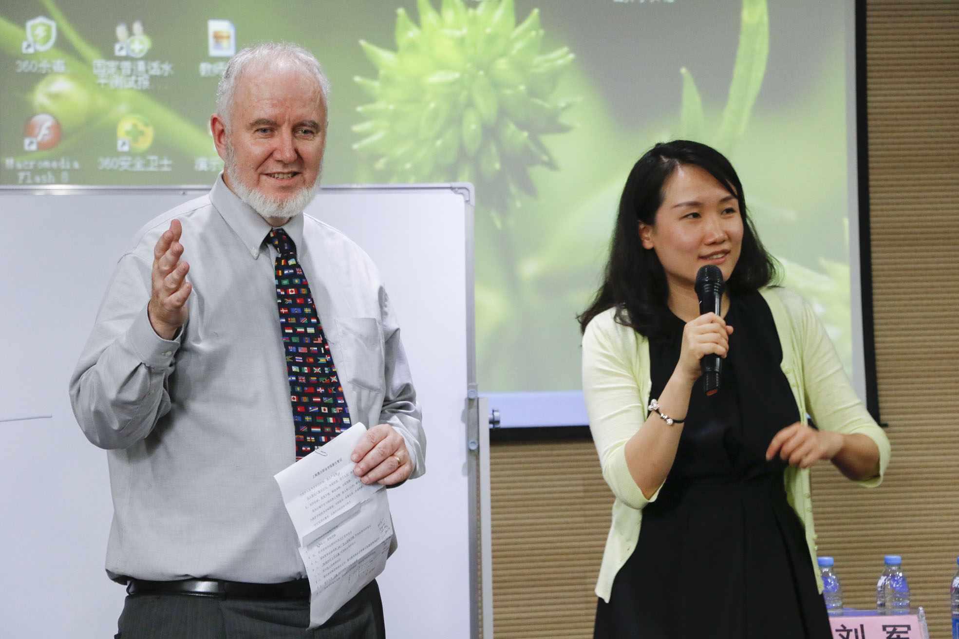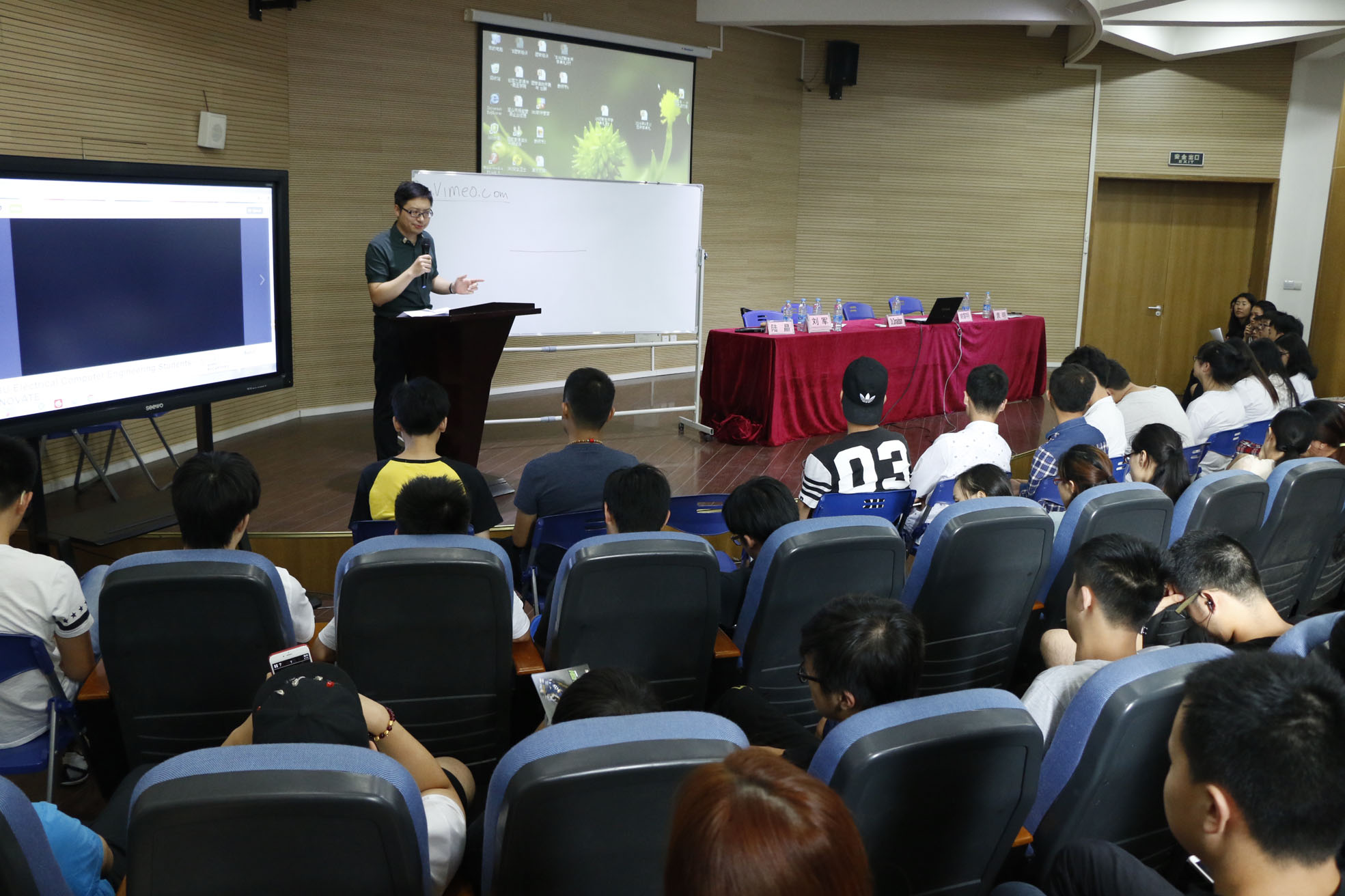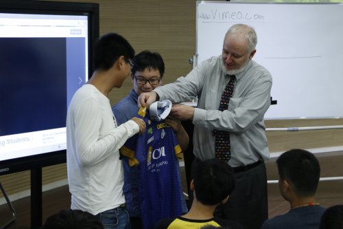 随后,来自美国加州浸会大学工程学院院长Dr.Donaldson做了生动的演讲,和同学们进行亲切的互动。Dr.Donaldson通过播放CBU录制的视频,对物联网专业进行简要介绍并告诫同学们善于克服困难,要培养自己的逻辑思维能力。