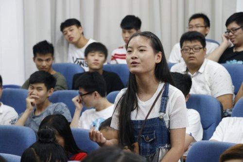 紧接着,2016级物联网专业新生赵羿同学代表新生发言,热切洋溢地表达了自己作为新一届中美合作物联网专业人应当胸怀物联网心,用青春热血和坚强奋进努力拼搏来实现心中的物联网梦!最后基础部王斌老师寄语16级新生要追寻梦想、善于发问、集中思想。