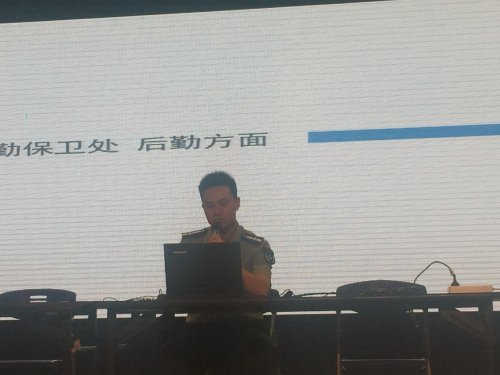 最后,后勤后保处金周伟副处长向全体新生介绍了学院后勤保卫处的工作内容,如全体新生应如何提高警惕、防止各种诈骗行为、切实做好自身保护工作;如全体新生应如何参与学院建设安全文明校园工作、自觉维护学院的安全稳定;以及讲解了外地学生如何办理其户口迁移的手续等。
