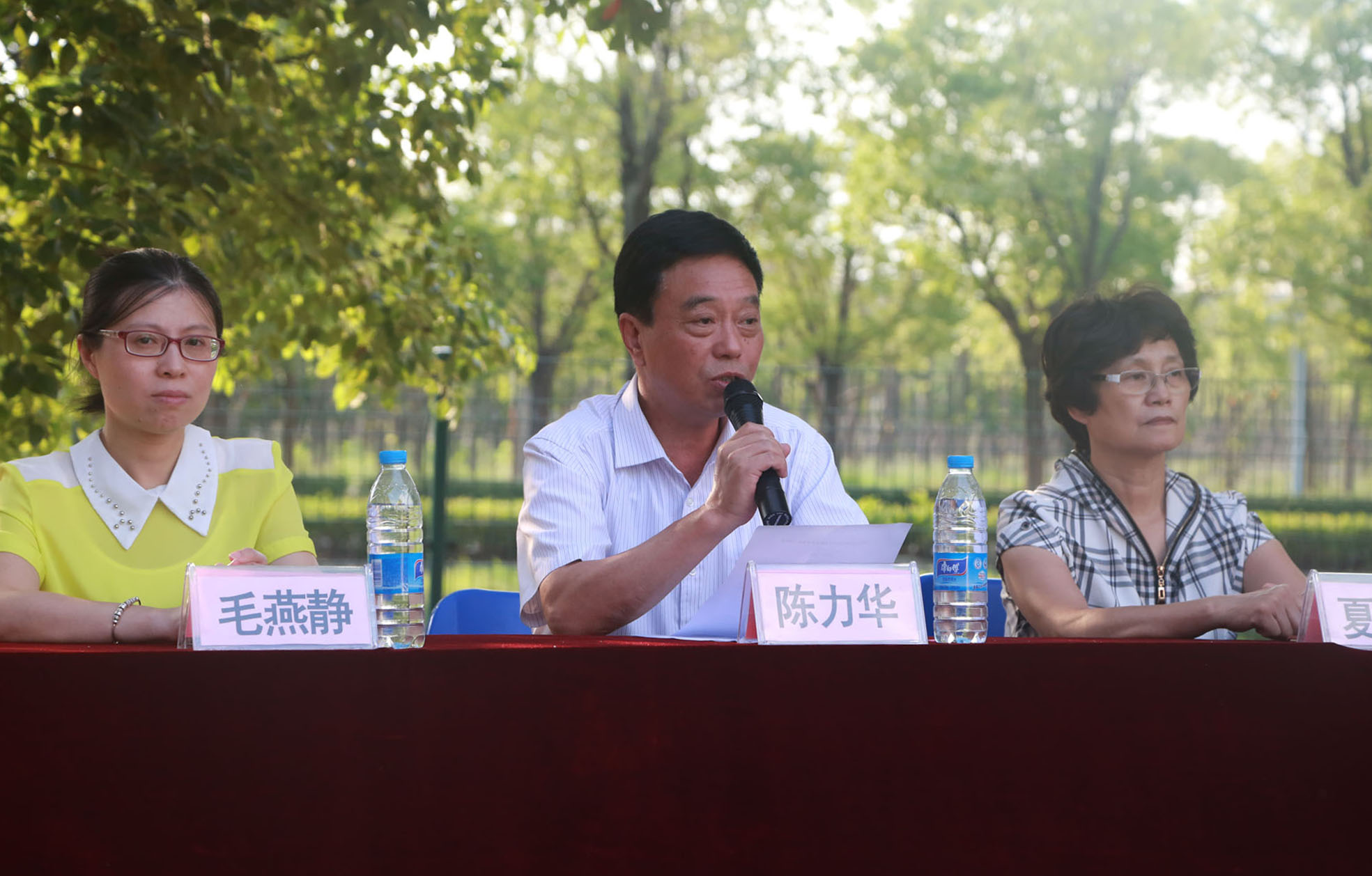 在开营式上,陈力华院长做新生军训动员讲话。他首先代表学院党政领导向军训基地领导和全体军训教官表示衷心感谢!陈院长说:大学生军训是国家一项长期的国防战略任务,是大学生履行兵役义务、接受国防教育的基本形式。通过军训,要使全体新生树立正确的理想信念,养成扎实过硬的作风和优良的道德品质,培养坚忍不拔的意志和艰苦奋斗的优良传统,从而以昂扬的斗志和焕然一新的精神风貌投入紧张而又充实的大学生活。为圆满完成本次军训任务,陈院长提出四点要求:一要提高认识,进一步认清大学生军训工作的重要意义,切实做到将军训作为全面推进大学生素质教育,提高大学生综合素质的需要;二要刻苦训练,保质保量地完成军训任务。要发扬“流血流汗不流泪,掉皮掉肉不掉队”的英雄精神,切实做到高标准、严要求;三要从严要求,强化新生军训的组织纪律观念。要学习解放军奋勇当先、团结友爱的精神风貌,切实做到刻苦训练,加强组织纪律观念,力争取得好的成绩;四要做好安全保卫及宣传报道工作,切实让同学们在“比、学、赶、帮、超”中夺取军训成果和文明建设的双丰收。陈力华院长希望全体新生以饱满的热情、高昂的斗志投入到军训中去,以优异的成绩向学校、基地、老师和教官汇报。