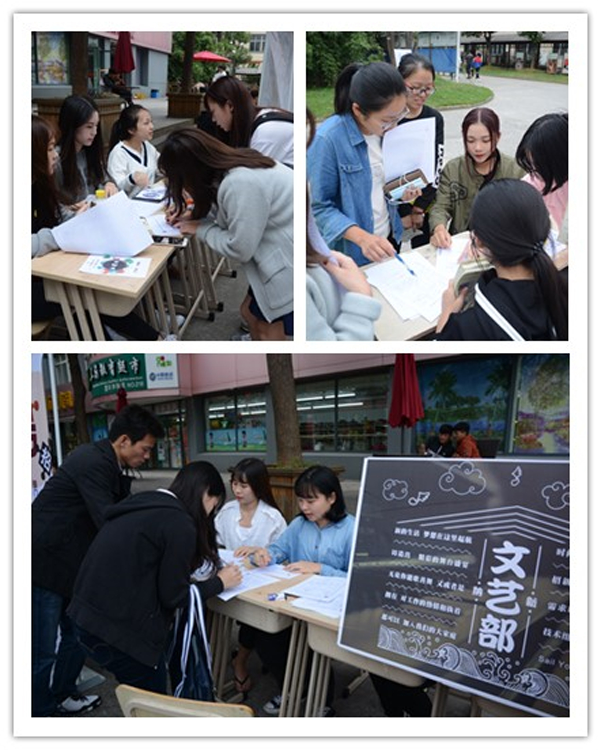 招新初试得到了广大新同学的热烈响应,美食街各部门摊位前人头攒动,同学们争先恐后选报自己心仪的部门。教学楼里各面试教室里,负责初试的面试官们认真阅读每位同学提交的报名表,了解他们的个人经历和工作能力,在面试过程中认真倾听每位同学的自我介绍,并针对性地提出与面试部门相关的问题,来“考考”我们的同学。