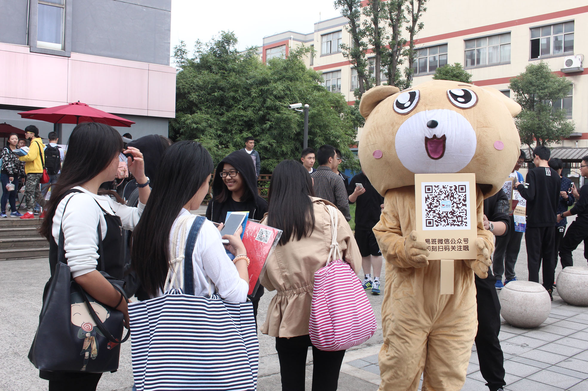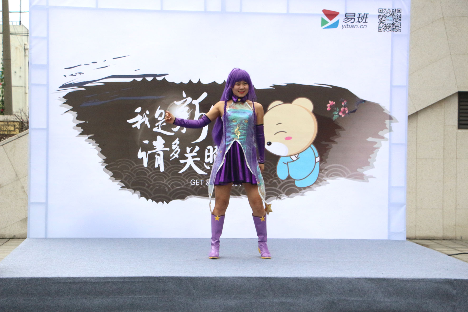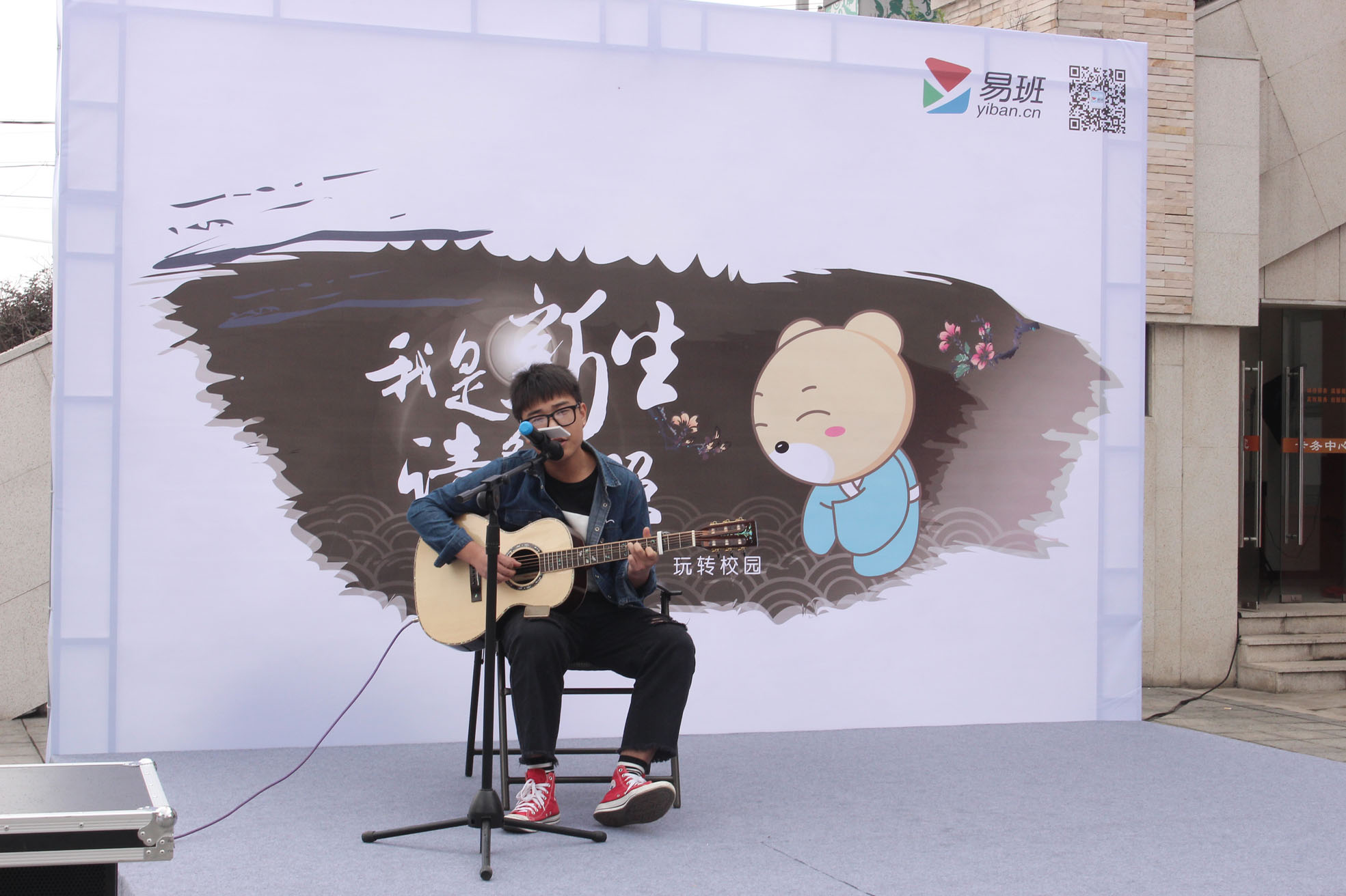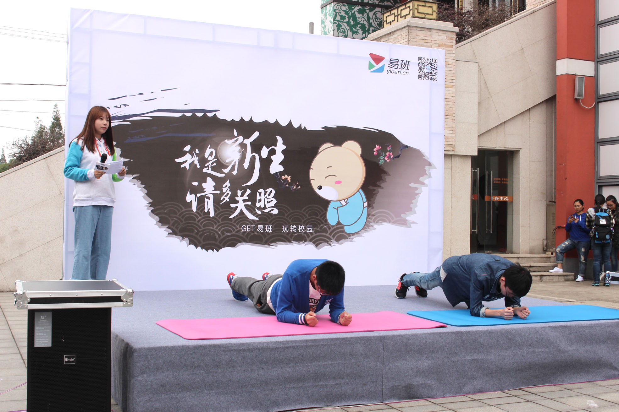 活动现场热闹非凡,同学们各展身手,积极参与有奖竞猜游戏,通过回答问题也对易班文化有了新的认识。吉他社同学们一展歌喉,或激情或抒情的歌声久久萦绕在学院上空;滑轮社的成员们不断变换花样轻松展现轮滑的魅力,引得不少人纷纷驻足观看,掌声四起。还有校外舞蹈嘉宾优美的舞姿和绚丽的服饰相得益彰。更有可爱的易班熊与同学们亲密互动,同学们在现场扫描二维码可获得鼠标垫、易班配章等精美礼品。