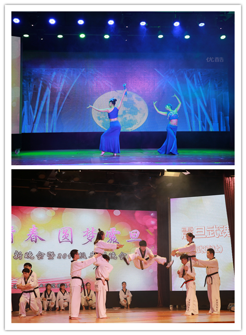 小品节目过后,高潮随之来临。众多社团以节目的形式,向同学们展现了社团文化的软实力。轮滑社带来的《大王叫我来巡山》多项高难度动作,都令台下的观众惊呼不已,深深领略到了轮滑的魅力。吉他社与舞蹈社带来的才艺展示,将我校同学的阳光一面与对音乐及歌舞的热爱进行了完美诠释。《甄嬛后传》则是由话剧社带来的一出幽默喜剧,剧中的精彩笑点令同学们捧腹不止。随后手语社的的《虫儿飞》和《夜空中最亮的星》的表演令人感动。武道社《震旦武魂》通过不同的表现方式与详尽具体的介绍结合各项高难度的跆拳道动作,也博得了观众们的一致好评。朗诵《少年中国说》则在临近晚会的末尾时将同学们的强国爱国之心展现的淋漓尽致。最后,手影舞《“新”的旅程》将整场晚会推向高潮,张开的手掌宛如黑暗中的一束光,成员默契的团队合作,手影与歌曲相结合,震撼全场!