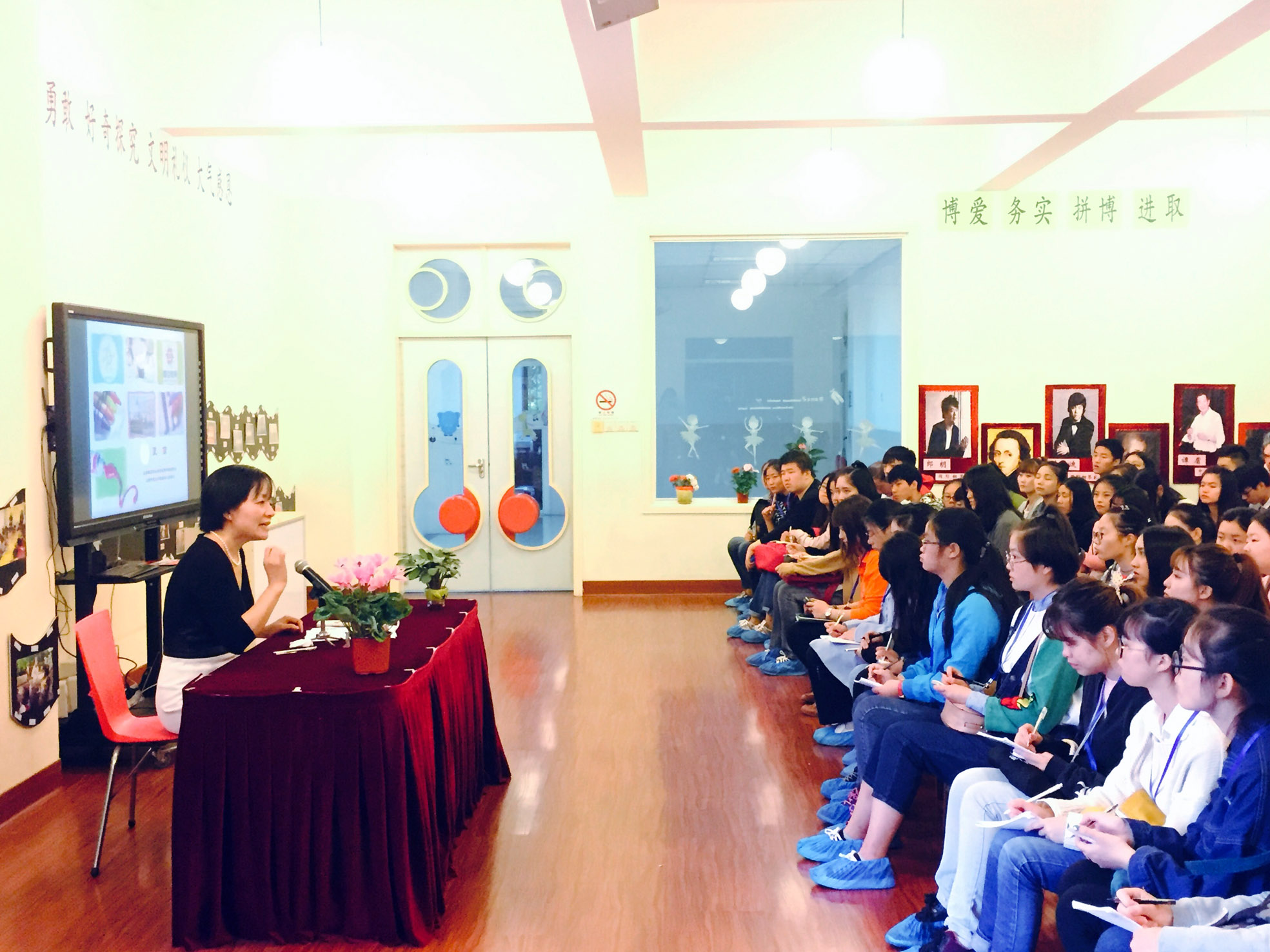 上海震旦外国语幼儿园夏苗园长认真为我院学生讲解