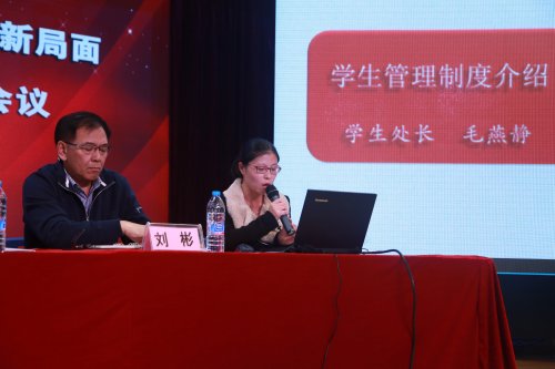会议由学生处处长毛燕静介绍了校学生管理制度体系和辅导员管理制度体系;党委副书记夏臻作主题报告;院长陈力华作重要讲话。