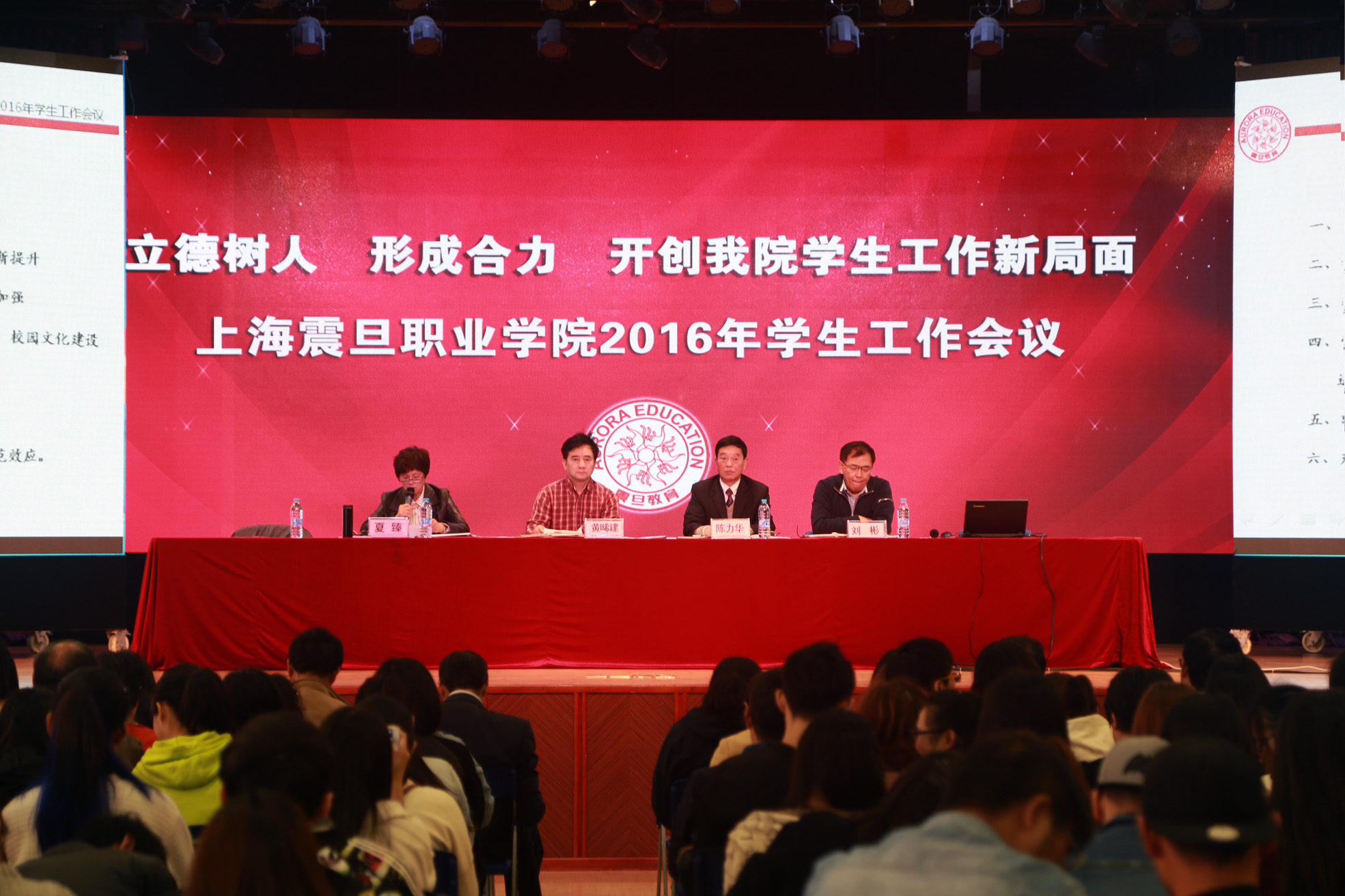 2016年11月4日下午,我校2016年学生工作会议在学校大礼堂隆重拉开序幕。会议由上海震旦职业学院党委书记黄晞建主持,震旦教育基金会理事长张惠莉、上海震旦职业学院董事长张沈、院长陈力华、党委副书记夏臻、副院长刘彬等出席了开幕式。出席开幕式的还有全体教职工和400余名学生代表。