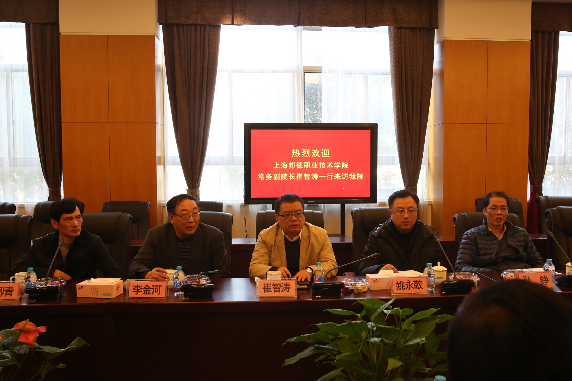 12月7日,上海邦德职业技术学院常务副院长崔智涛、教务科研处处长姚永敬、教务科研处副处长李金河、信息中心主任助理孙峥、后保处蔡柳青老师等一行来我院考察交流,我院院长陈力华、院办副主任罗英姿、教务处副处长张莹、督导办主任胡建国、图文信息中心主任张健在体艺楼国际会议中心参加接见并陪同座谈。