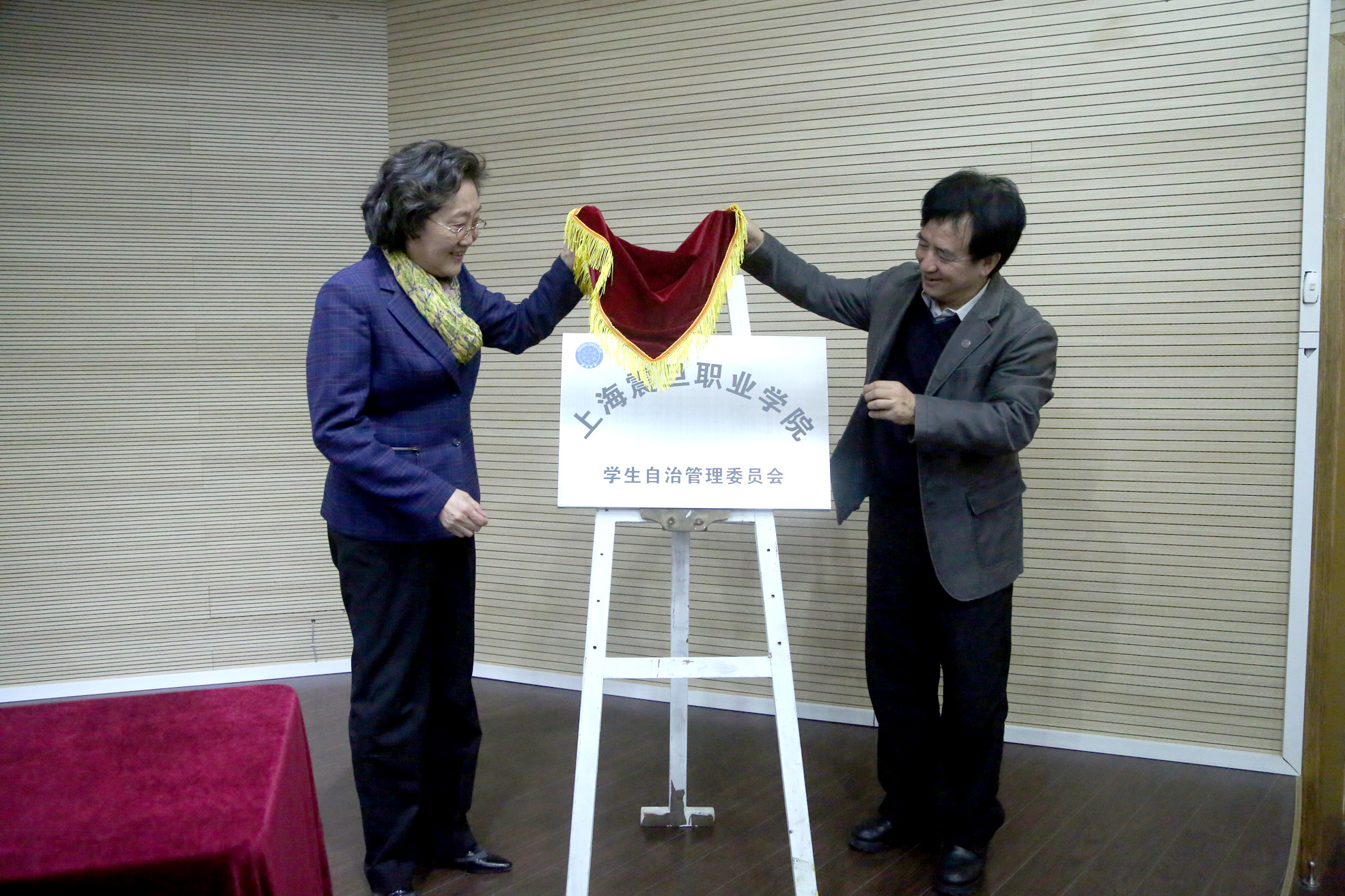 为充分发扬我校学生的自治精神,促进我校校风、学风和精神文明建设。会议宣布成立“校学生自治管理委员会”。张惠莉理事长和黄晞建书记进行了揭牌仪式,学生处副处长徐磊介绍了学生自治管理组织成立的宗旨和组织架构。