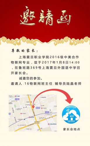 2017年1月8日下午两点,我院16级物联网(中美合作)2016——2017学年第一学期学期第一次家长会在上海震旦外国语中学召开,虽然天气阴沉,但是家长们都如约而至本次家长会。上海震旦职业学院董事长张沈,机电工程学院副院长姚黎明出席本次家长会,会议还邀请了学校心理咨询中心的武莹莹老师,会议由辅导员陆晶老师主持。