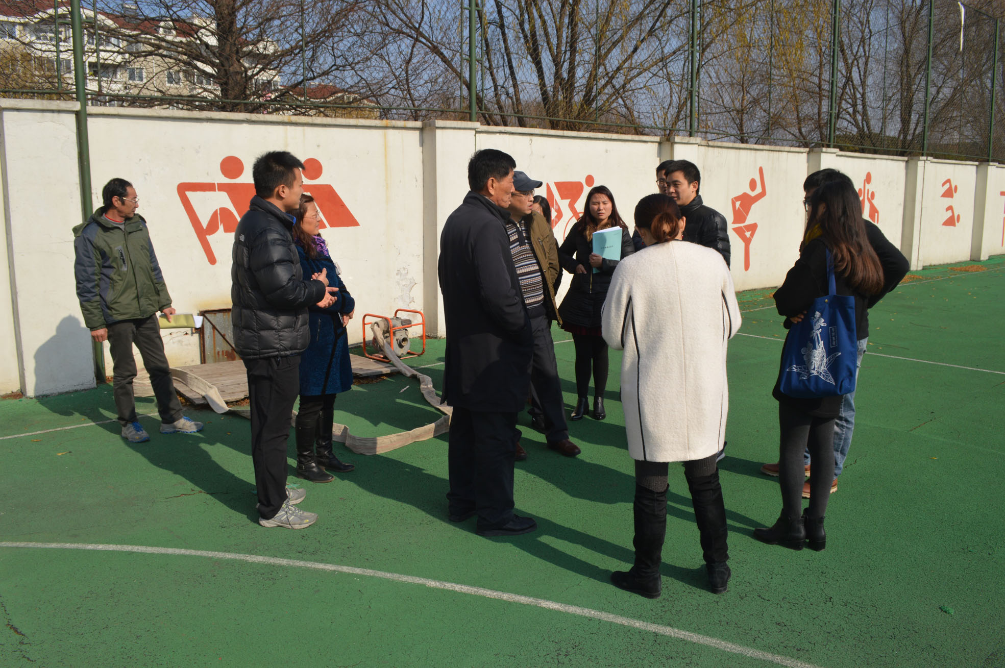 考核验收组听取汇报后,分别对我院用水、节水规章制度和台帐情况等相关材料进行审查,并实地检查食堂、宿舍、教学楼等场所节水器具、设施与供水管线。在我院建筑实训楼,专家组对建筑楼安装的雨水收集器非常感兴趣,从造价、工作原理一直到蓄水的使用情况都逐一进行了了解。同时专家们对我院抽取河道水进行校内绿化浇灌的模式也进行了深入的探讨,给我院推荐了很多可行性的方案。