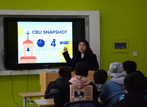 3月9日,美国加州浸会大学(CBU)国际招生处主任MarissaYoung、副主任Vicky到访上海震旦职业学院,为16级中美合作物联网专业学生做出国留学项目宣讲。