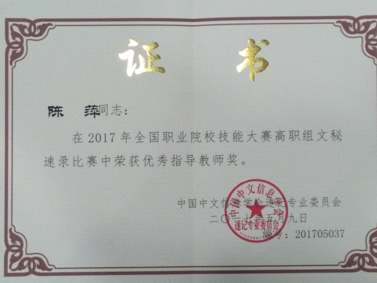 由我校实践办和机电工程学院共同组织,实践办主任叶素梅和陈萍老师带队参加第十届全国职业院校技能大赛文秘速录项目竞赛,荣获该赛项团体三等奖!获奖学生为机电工程学院的董剑皓和沈跃,传媒艺术学院的支卓尔。指导老师陈萍老师获得优秀指导老师奖!这次竞赛竞争非常激烈,有来自28个省市69所高职院校的207名参赛选手参赛,速录高手云集。我校选手发挥很好,经过6个小时的拼搏取得好成绩,是该国赛项目上海市三所参赛院校中唯一获得的奖项。供稿:实践办 叶素梅 审核:胡克文