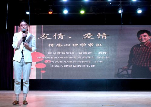 上海震旦职业学院2017年度大学生心理健康教育活动月系列讲座之一——《友情与爱情》——5月15日下午16:30在校大礼堂举行,主讲人为震旦教育集团党委书记黄晞建教授。校心理健康教育中心全体教师和全校600余名学生聆听了此次讲座。讲座由心理健康教育中心主任毛燕静老师主持。