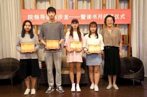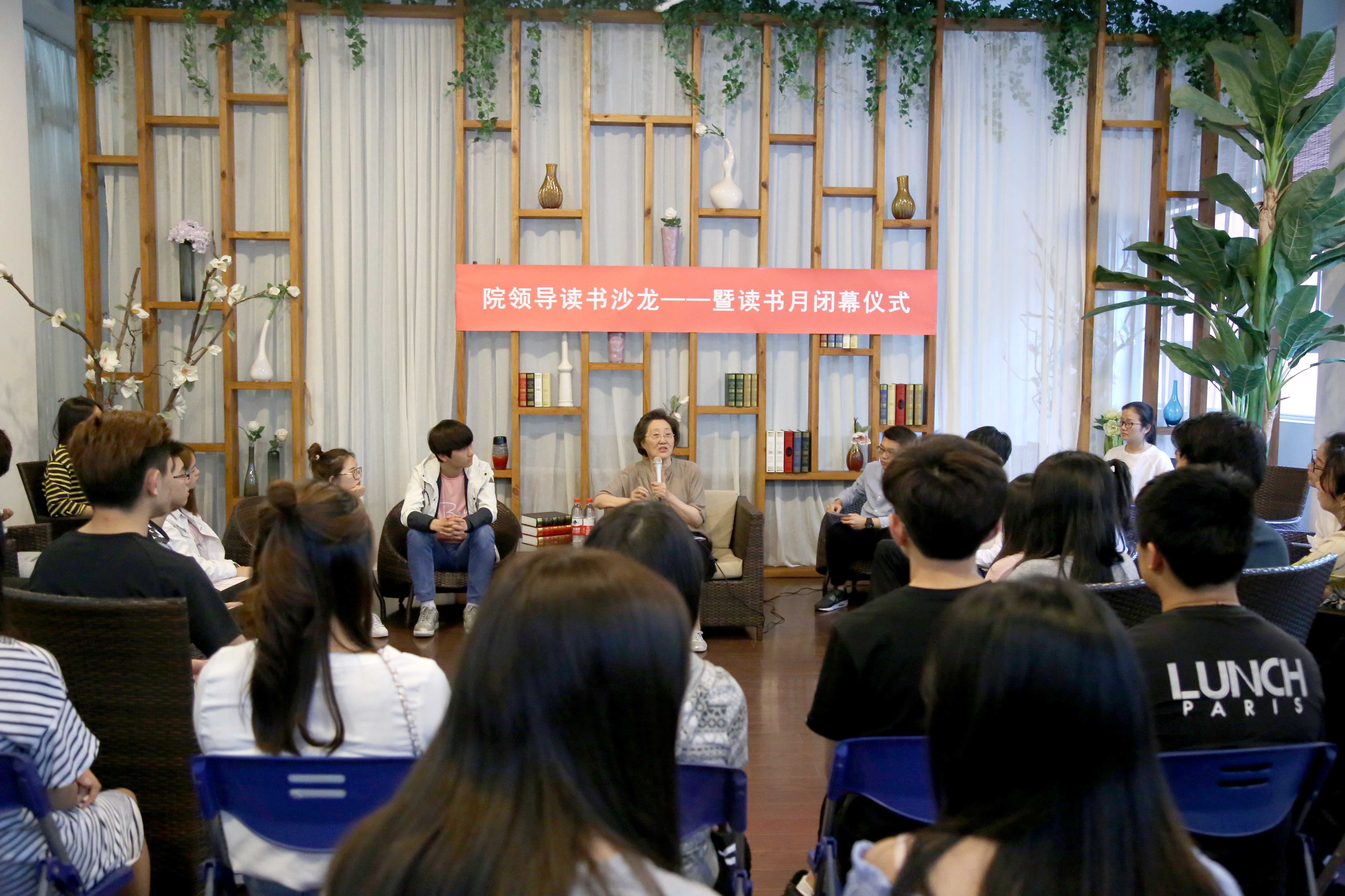 院领导读书沙龙——暨读书月闭幕仪式在体艺楼一楼茶座举行,图书馆邀请张惠莉理事长向同学们分享自己的读书心得和感悟,图书馆馆长张健、院长办公室主任张莉、团委书记曹晓莉、信息中心副主任金瑶以及三十余位学生代表出席了活动。