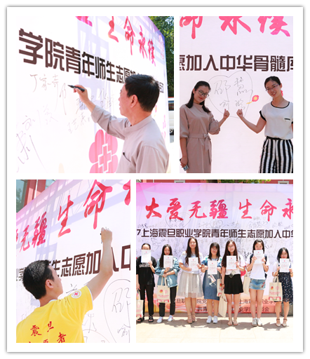 5月26日上午9点30分,上海震旦职业学院青年师生志愿加入中华骨髓库现场样本采集活动在我校体艺楼底楼举行,宝山区红会副会长金培生老师、校党委书记黄晞建老师、院长陈力华老师、党委副书记夏臻老师、文明办主任黄敏老师、团委书记曹晓莉老师亲临了本次活动。
