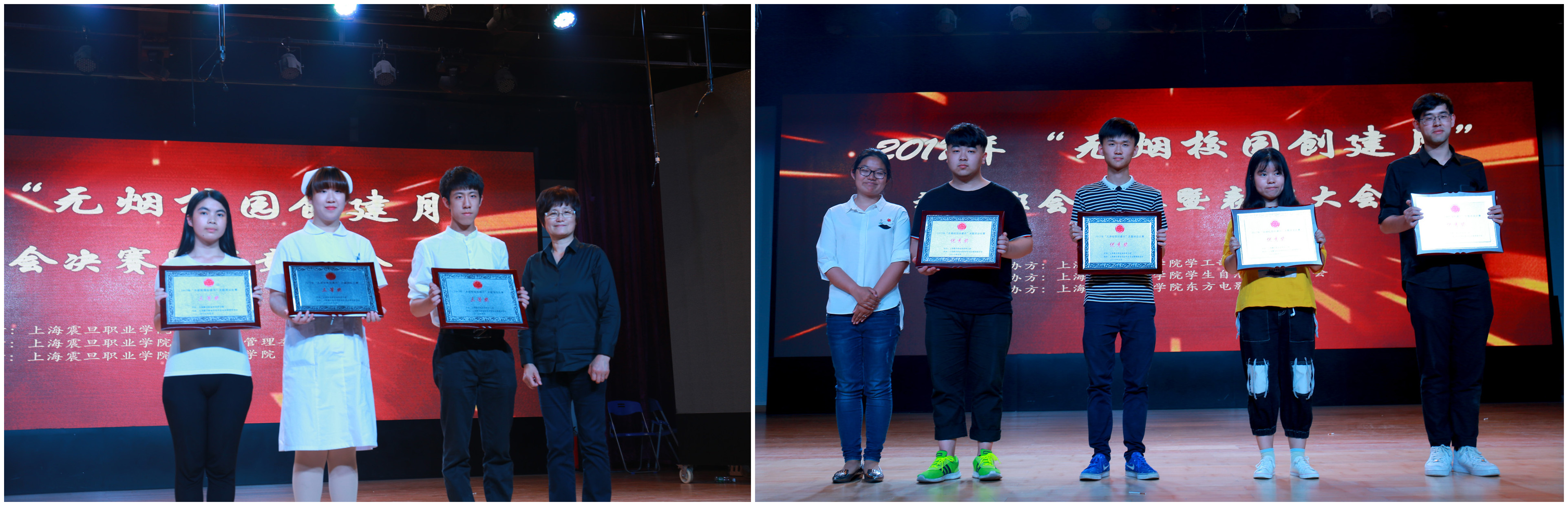 5月31日16:30在学院大礼堂开展了2017年“无烟校园创建月”禁烟主题班会决赛暨表彰大会,出席本次大会的有上海震旦职业学院党委书记黄晞健,校长陈力华,党委副书记夏臻,学工部部长毛燕静,文明办主任黄敏,团委书记曹晓莉,以及各二级学院党总支书记和辅导员。大会分为两大部分。首先开展禁烟主题班会决赛,各学院代表队通过PPT演说加情景剧的形式来呈现,最终16机电获得一等奖,16护理7班、16音像班获得二等奖,16会计2班、16护理5、6班、16学前3班获得三等奖,15营养监测班、16艺术班、16数字传媒班、16工商班分获优秀奖。大会第二部分由校领导对本届“无烟校园创建月”系列活动获奖同学和班级进行表彰和颁奖。