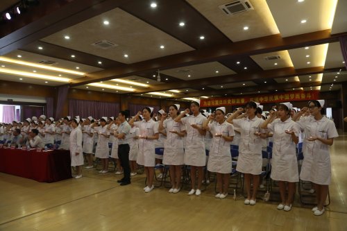 伴随着庄严的乐曲,15级护理专业全体同学依次上台,授帽嘉宾为他们带上圣洁的燕帽。他们接过前辈手中的灯,站在南丁格尔画像前,左手点燃南丁格尔精神的红烛,举起右手庄严地许下誓言。授帽仪式是护生成为护士的重要时刻。学生杨懿、王雯婷代表全体15及护理专业学生发言,表示他们将以崭新的精神风貌、朝气蓬勃的工作热情、严谨求实的学习态度投入到未来的临床实习工作中。校长陈力华教授作了热情洋溢的致辞,他肯定了护理专业同学们的良好学习态度,殷切希望同学们以仁爱之心善待病人,做到热心、细心、耐心,责任心争当一名优秀护士,将南丁格尔精神崇高,发扬光大。