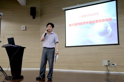 这次科技节开幕式上,来自六个学院的专家结合本学院专业发展和科技创新理念及设想给大家带来了精彩的演讲。如公共卫生与护理学院的司晓晶副院长结合当今科技发展的热点讲述《石墨烯在生物传感器中的应用》,让我们了解了这种新材料的神奇之处;机电工程学院的姚黎明院长带来了《刍议我国互联网+的3D》,带领大家认识互联网的前世今生,展望未来发展的无限可能;东方电影学院姚晓蒙院长的《从拍摄电视剧“悲壮英雄”看当前影视剧的发展》,把科技融入实践让我们看到电影和科技的有机结合;传媒艺术学院叶冲副院长的《大数据驱动下的“数据新闻”》让听众耳目一新,看到新闻背后的科技含量;经济管理学院王欢书记的《竞技生态云平台开创互联网沙盘教学新时代》把科技元素融入教学,给学生带来全新的感受;教育学院李杰主任的《播撒希望的种子》,把培养学生创新能力作为一项重要的教学内容,丰富了学前教育的内涵。