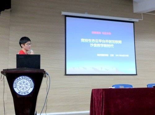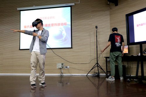 接下来,在辅导2017国赛虚拟现实赛项和文秘速录赛项分别取得团体二等奖和三等奖的指导老师陈萍介绍了国赛经验,并带领虚拟现实赛项国赛选手为大家现场演示国赛学生作品,并邀请现场观众体验了虚拟现实技术的震撼效果。