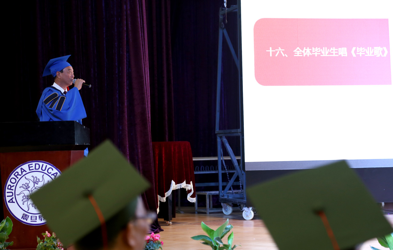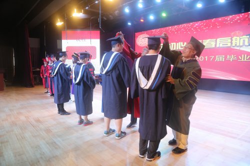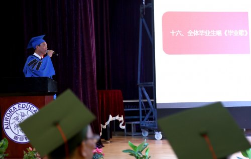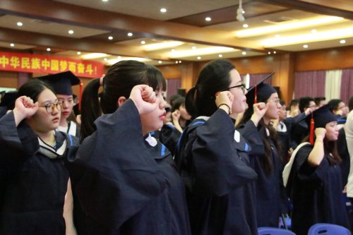 授证仪式后,在朱书晴同学的领誓下,全体毕业生们进行了毕业宣誓。全体毕业生在陈校长的带领下高唱《毕业歌》。在歌声中2017届毕业典礼顺利结束。