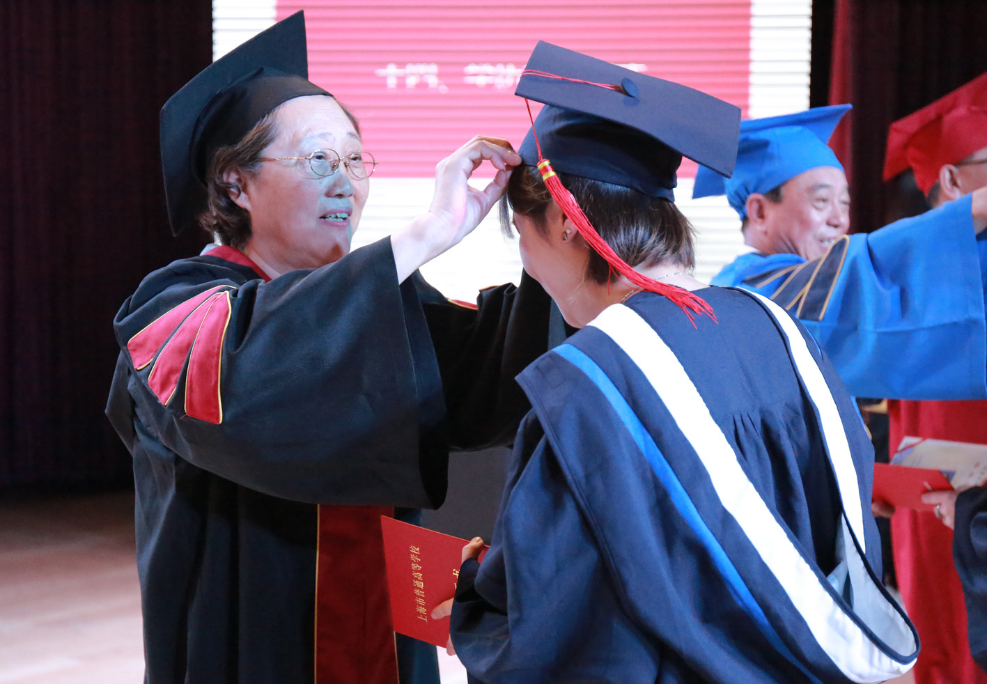 今年我校共有毕业生1465名,其中1240名学生顺利毕业并获得毕业证书,何勤勤等44名学生获得了“上海市普通高等学校优秀毕业生”的荣誉称号,杨俊杰等25名学生获得了“上海震旦职业学院优秀毕业生”的荣誉称号。在毕业典礼上,校领导向这69位同学颁发了荣誉证书。另外,朱书晴等28名同学成功考取了上海应用技术大学等4所大学的全日制专升本。沈浩等8名同学已预报名参军。