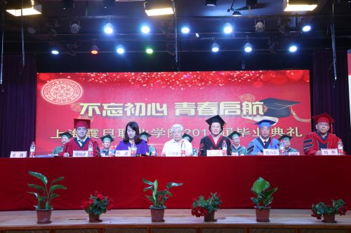 2017年6月19日上午9:00,我校2017届毕业典礼在大礼堂召开。名誉校长黄鼎业教授、震旦教育基金会理事长张惠莉、震旦教育集团董事长张沈、校党委书记黄晞建、校长陈力华、校党委副书记夏臻、副校长刘彬,以及各二级学院院长、党总支书记、任课教师及毕业班辅导员出席毕业典礼。部分上海市优秀毕业生家长代表受邀参加毕业典礼。