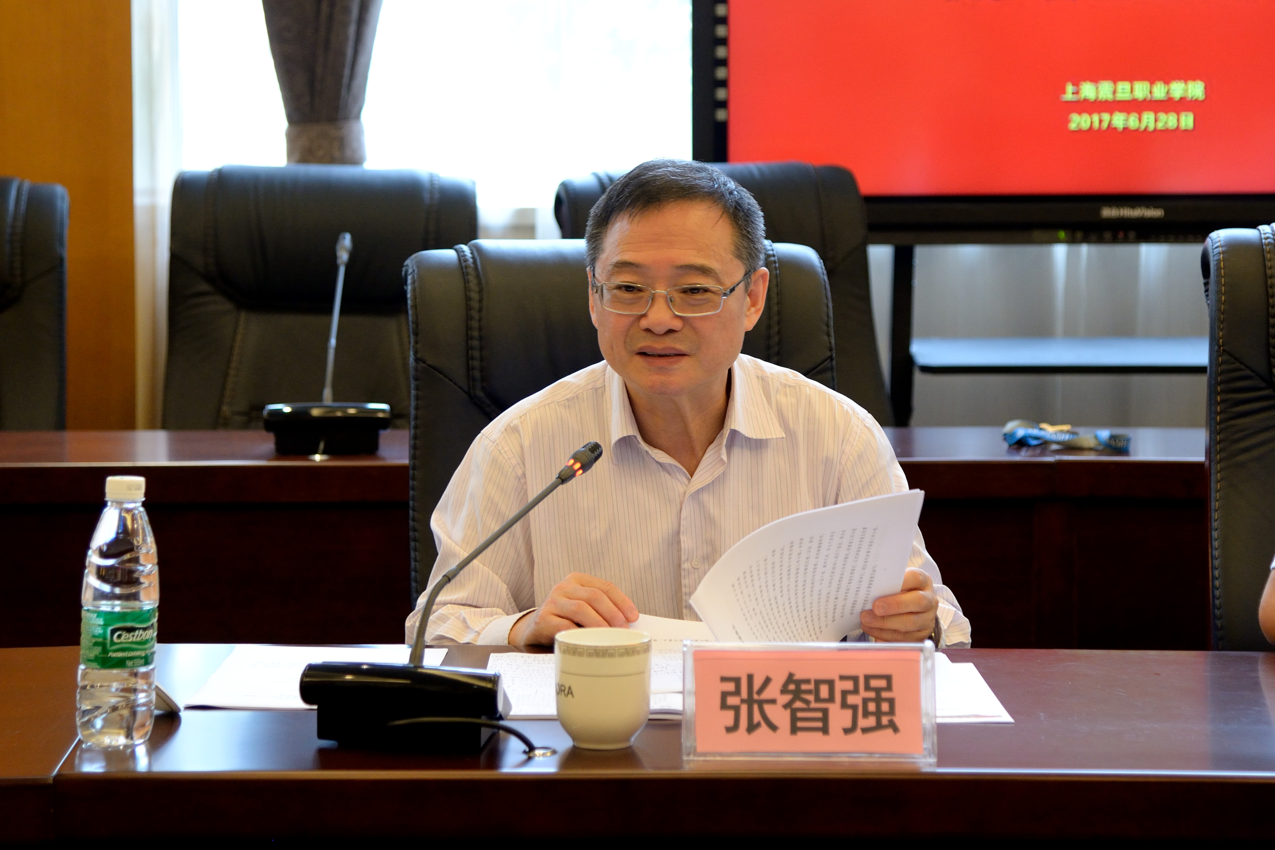 为贯彻落实全国和上海高校思想政治工作会议精神,以张智强为组长的上海市高校思政工作第五督查组一行7人,于6月28日上午来校开展实地督查工作。管委会主任张惠莉、董事长张沈、校长陈力华、党委书记黄晞建、副书记夏臻、副校长刘彬等党政领导及学校党政有关部门负责人参加。