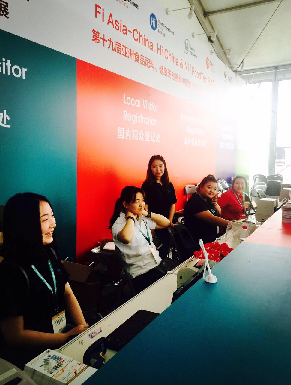 这次实训是参加在“上海新国际博览中心”举行的第十七届世界制药原料展中国展的志愿者服务。15级药学专业同学于6月19日下午在国际博览中心接受各自岗位的培训,6月20日到6月22日进行志愿者服务。本次参加志愿者服务的学生有200余人,主要岗位分别有管理通道、自助机、服务台和填表台。填表台作为观众入场的第一关卡,志愿者要耐心的指导各位观众通过二维码进行注册,对于年纪较大的不善使于用微信的观众帮助他们填表完成注册。注册完成的观众可以去服务台,服务台的同学会根据其填写的基本信息录入电脑,打印观众证,自助服务机同学的则帮助进行自助打印。获取观众证后的观众通过安检,管理通道的同学对观众证上条码的扫描,鉴别观众证的真伪。各岗位同学严守职责,服从安排,为入场的观众们提供最优质的服务,得到主办方高度评价。