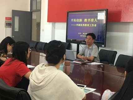 陈力华校长以他三十多年的从教经历,教导新教师如何了解学生、如何自省、如何克服教学过程中的难关、如何做一名优秀教师;并希望新教师努力实践教书育人,争做优秀教育工作者。