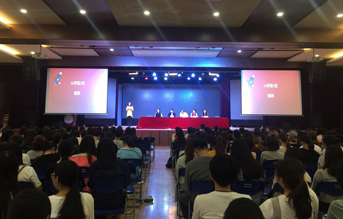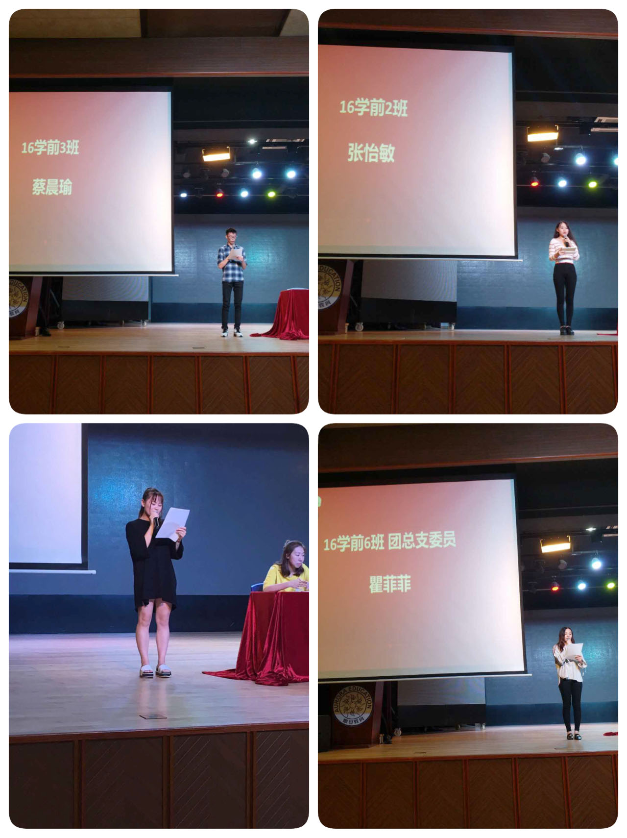 大会开始,来自16学前2班的施琳、张怡敏同学,16学前3班的蔡晨瑜同学和16学前6班的瞿菲菲同学分别从学习与实践、艺术类发展、学习生活和团总支社会实践的等角度进行发言。副院长李杰老师对他们的发言进行了总结,希望大家以这几位同学为榜样,找准定位,坚定目标。