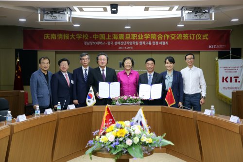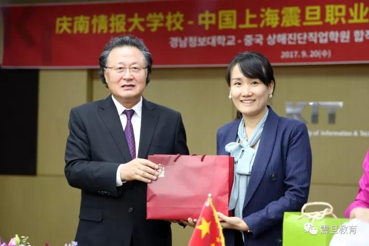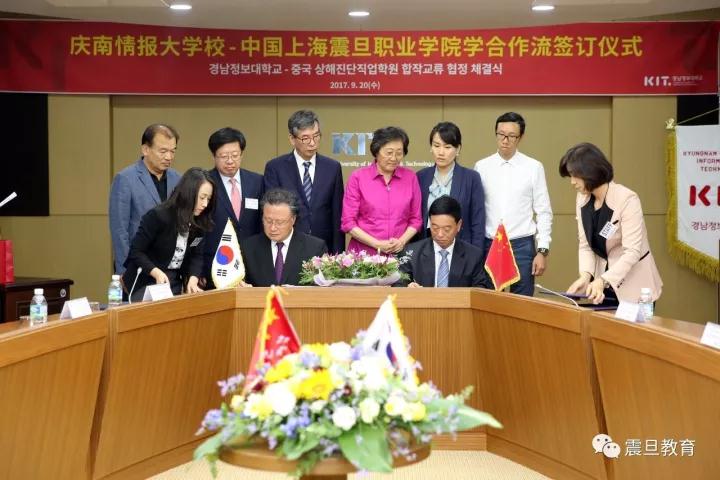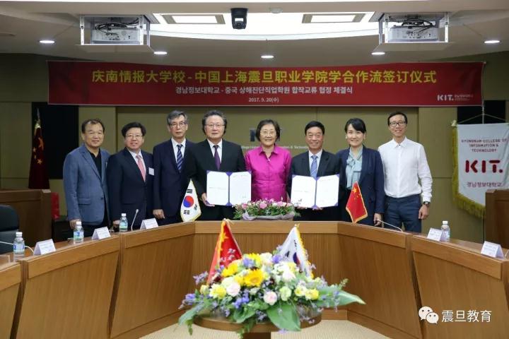 2017年9月21日,上海震旦教育集团创始人张惠莉、震旦教育集团董事长张沈、上海震旦职业学院校长陈力华一行,在韩国釜山与韩国庆南情报大学签订了战略合作协议。