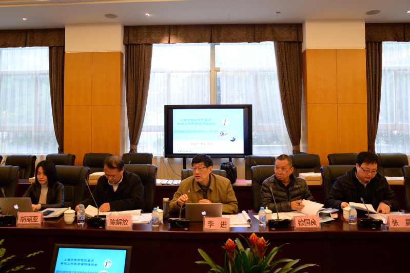 11月21日,以李进为专家组组长一行五人莅临我校进行2017年度上海高职院校重点专项工作现场调研,对我校创新发展三年行动计划重点专项工作开展现场调研、推进和指导。理事长张惠莉、校长陈力华、党委书记黄晞建、党委副书记夏臻以及各职能部门负责人和项目负责人参加了会议。