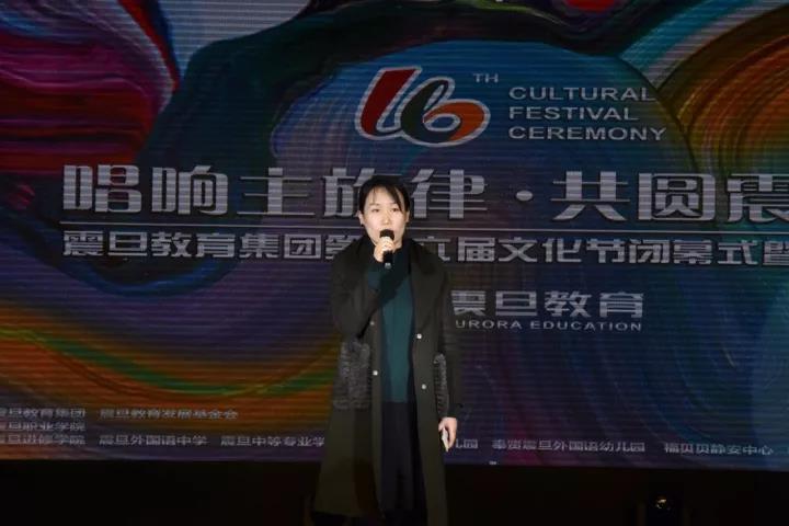 震旦教育集团董事长张沈女士为开场热忱祝辞,让我们用实际行动共同验证震旦教育成果,将艺术融入教育,让学生提高综合素养、培养高尚人格,成为复合型创造型人才。让我们畅想时代热情、共筑中国梦,共圆震旦梦!愿震旦少年意气壮虹霓,屹立向东方,翘首朝朝迎太阳!
