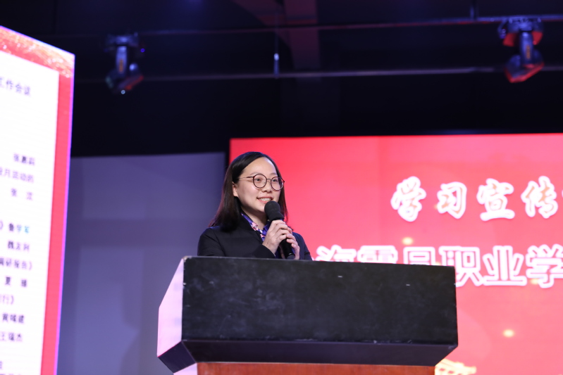 张惠莉主任首先对民办党工委领导对我校的关心、指导表示感谢,她表示本次会议是学校思政工作推进的里程碑,是学校十三五期间重要举措,希望我校全体师生认真学习宣传贯彻十九大精神,努力探索新时代民办高职教育改革和创新之路,她代表震旦教育集团、震旦教育发展基金会预祝本次大会圆满成功。