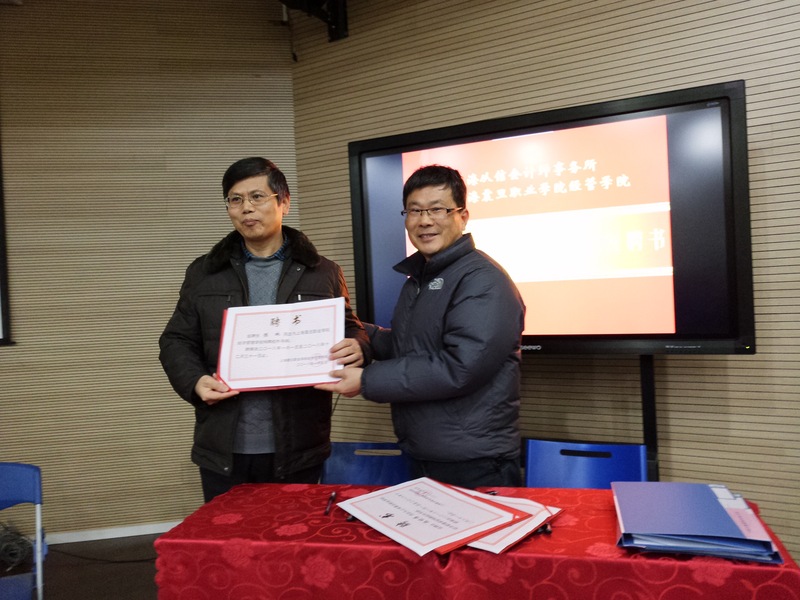 经济管理学院院长胡守忠教授代表学院与三家企业签订校企合作协议、颁发聘书并揭牌。
