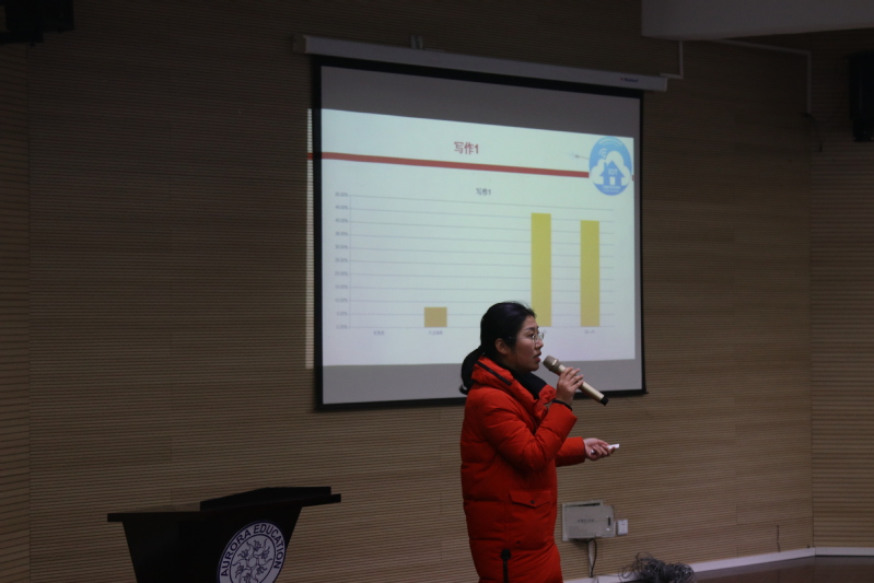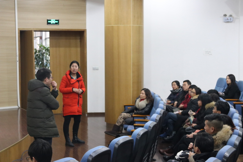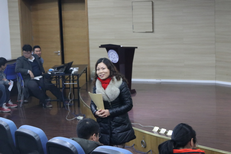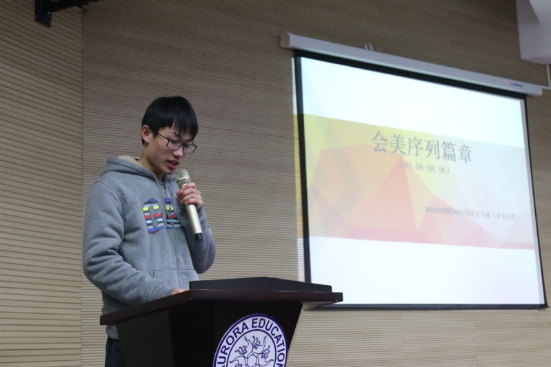 陆晶老师介绍物联网两个班的学生学期学习状况、存在的问题,介绍了合作院校美国加州浸会大学情况,对2018暑期赴美夏令营的动员。
