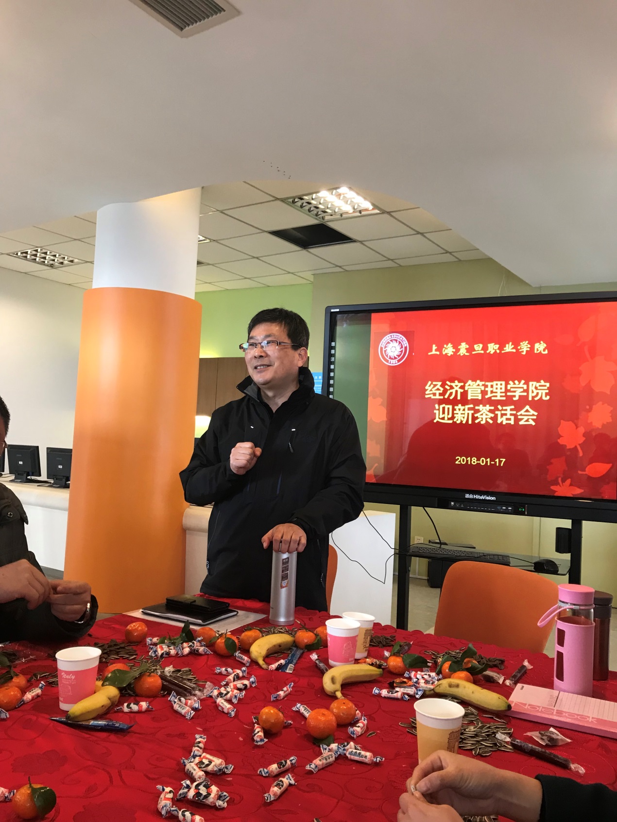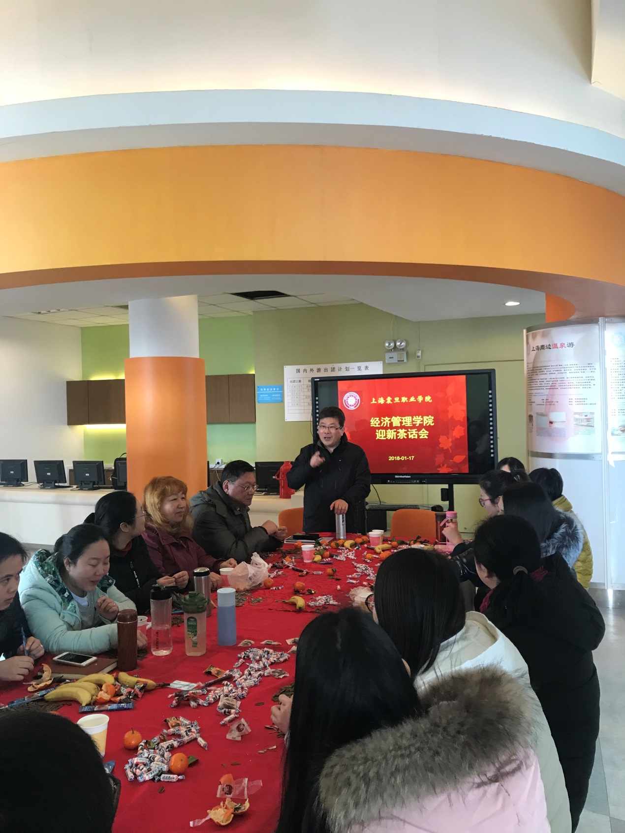 2018年1月17日上午,经济管理学院在六楼实训室举行了迎新茶话会。院长胡守忠、党总支副书记沈宇光、学院教师及辅导员参加了此次茶话会。学院办公室及工会小组为本次茶话会做了相关准备。
