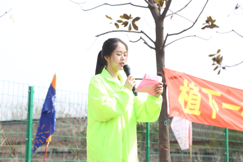 张惠莉理事长作动员讲话,她希望同学们要珍惜、爱护每一片绿,从身边做起,从现在做起,做绿化、美化环境的有心人。她强调,今天的植树节意义非凡,师生同心协力种下这片海棠林,并将共同见证新校区的拔地而起,希望师生携起手来,为建设绿色震旦、文化震旦、智慧震旦、创新震旦贡献自己的光和热,共同谱写震旦职业学院的新时代。