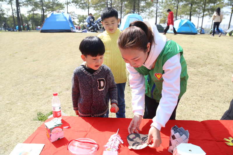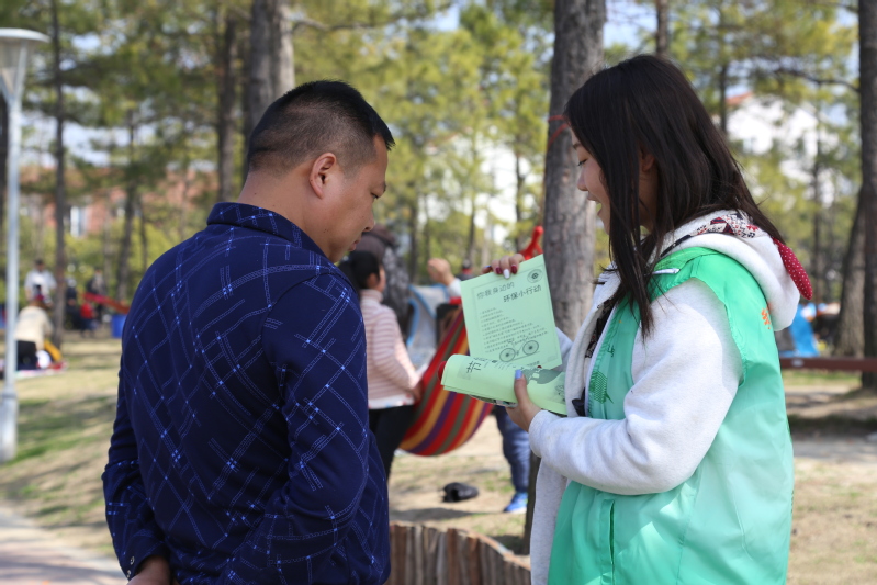 为切实践行环保理念,队伍历经约50分钟时间,以徒步方式行进3公里到达美兰湖景区,一路上志愿者们神采飞扬、意气风发。到达美兰湖景区后,志愿者们按照分组迅速展开活动,8组志愿者各司其职;活动以践行、宣传环保知识板块拉开序幕,志愿者们拿起工具,撸起袖子,到景区各处清扫垃圾;宣传组的同学们热情、耐心的向大家讲解我们身边常见的环保小知识,鼓励大家积极行动起来。展示、分享环保作品环节将整个活动推向高潮,前来观看、分享的游客和社区居民纷纷为大学生废旧物品利用的手工创作点赞,形象生动的工艺更是受到了小朋友们的热烈欢迎,他们纷纷表示自己也要做一名环保宣传、践行志愿者。