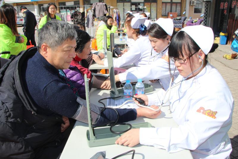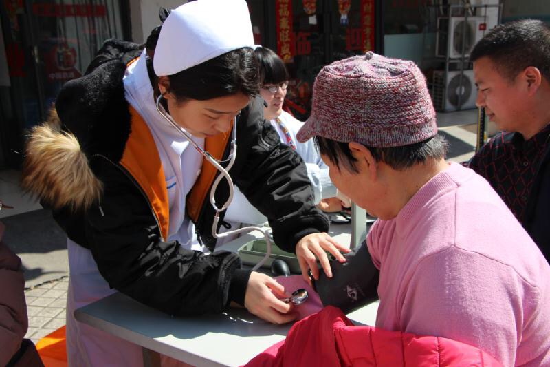 2018年3月9日下午,在校团委书记曹晓莉和公共卫生与护理学院党总支副书记孙立岩的带领下,由公共卫生与护理学院30多名师生组成的医疗服务小分队,与宝通家园居委会联合开展了“奉献自己,服务他人,震旦学子走进宝通”活动。