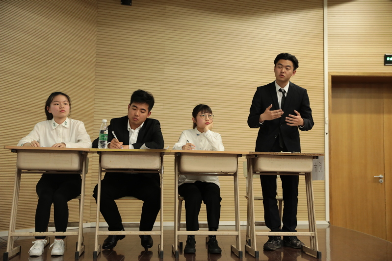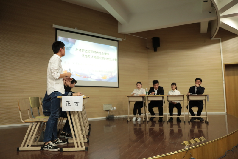主持人介绍完正反方辩手之后,比赛进入开篇理论环节。首先双方一辩分别就自己的辩题进行了立论陈词,紧接着是最为激烈的攻辩和自由辩环节,双方的二辩、三辩纷纷使出看家本领,他们沉稳冷静地阐述己方的论点和依据,配合默契,妙语连珠,最后双方的四辩对各自的观点进行了总结。比赛过程中,正反方队员激情澎湃、争锋相对。台上的辩手准备充分、自信十足,精彩的驳击与论证赢得了场下观众的阵阵喝彩,给在场的评委留下深刻的印象。经过一个多小时激烈的角逐,最终评委老师们从参赛人员中挑选了8名同学,他们凭借自己敏捷的思维和有力的辩论,最终脱颖而出。同时他们将于今年6月代表我校参加“梦想杯”上海市大学生辩论赛。