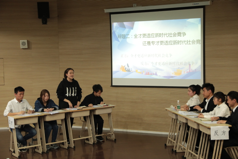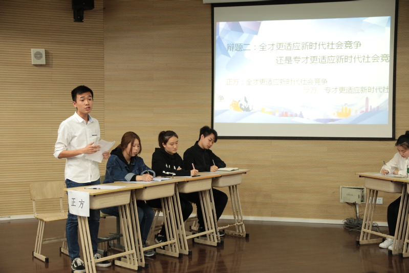 3月29日晚7点30分,“梦想杯”上海市大学生辩论赛--上海震旦职业学院选拔赛在我校体艺楼实验剧场拉开序幕。此次辩论赛的主题是“践行新思想,拥抱新时代”,两场比赛的辩题分别是“公共人物是否应该表里如一”和“全才更适应新时代社会竞争还是专才更适应”。通过初赛笔试选拔的16位参赛同学被分为四组,进行对抗比赛。到场的评委老师有校团委书记曹晓莉老师,校团委副书记喻璐老师、邵慧老师,机电工程学院团总支书记武侠老师和公共卫生与护理学院辅导员相萍萍老师。