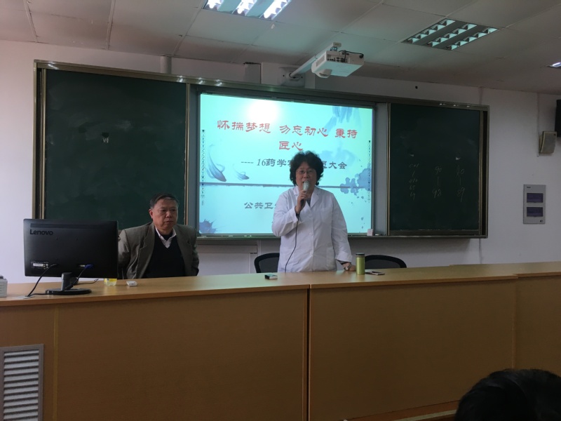 3月30日,公共卫生与护理学院在1号教学楼409教室召开16药学实习动员大会。公共卫生与护理学院院长赵佩君、药学专业主任胡鹏飞,16药学辅导员李丽丽及2016级全体药学学生参加了此次动员大会。