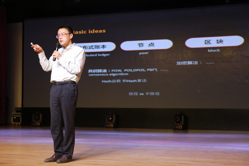 4月27日下午,《中国伟业·上海制造》系列讲座2018年首场讲座开讲。上海市信息化青年人才协会名誉会长、上海市信息化企业家协会会长戴剑飚教授应邀作《区块链——过去与未来》专题讲座。校长陈力华、各职能部门、各学院师生500余人参加了讲座学习。讲座由校党委书记黄晞建主持。