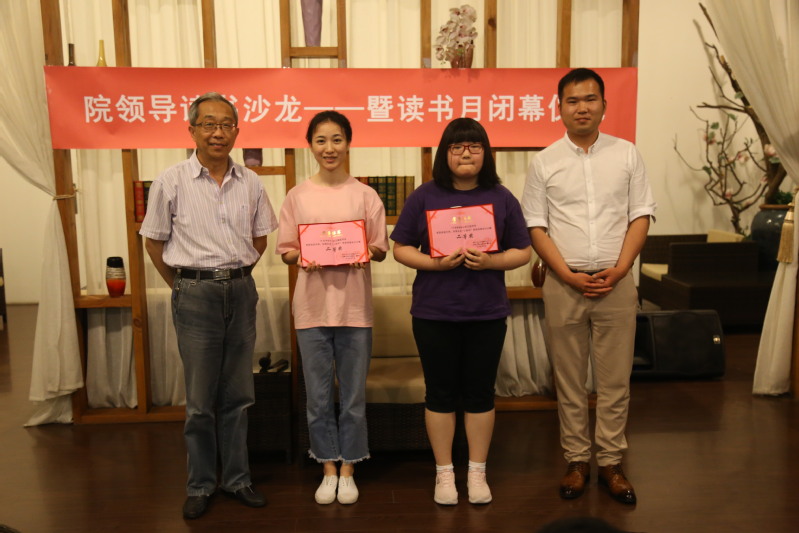 分享结束后,张健馆长宣布了读书月原创诗歌创作大赛及海报创意设计大赛的获奖名单,陈力华院长、学院有关领导及三新公司刘毛毛经理为同学们进行了颁奖。