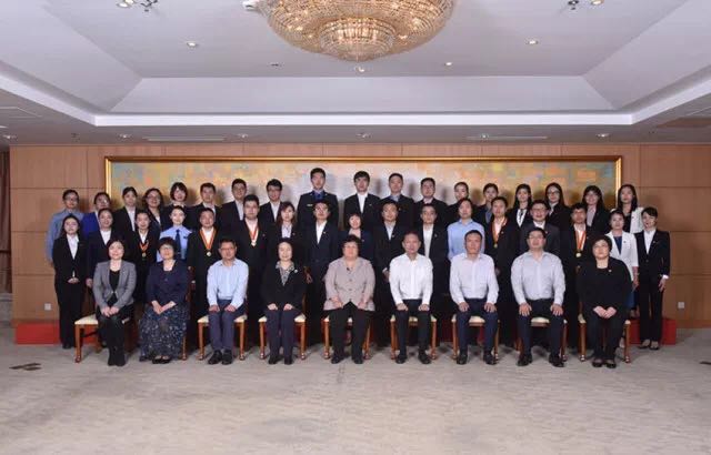 曹晓莉(三排左二)作为宝山区优秀青年代表受到区领导接见