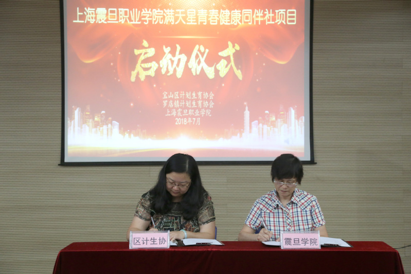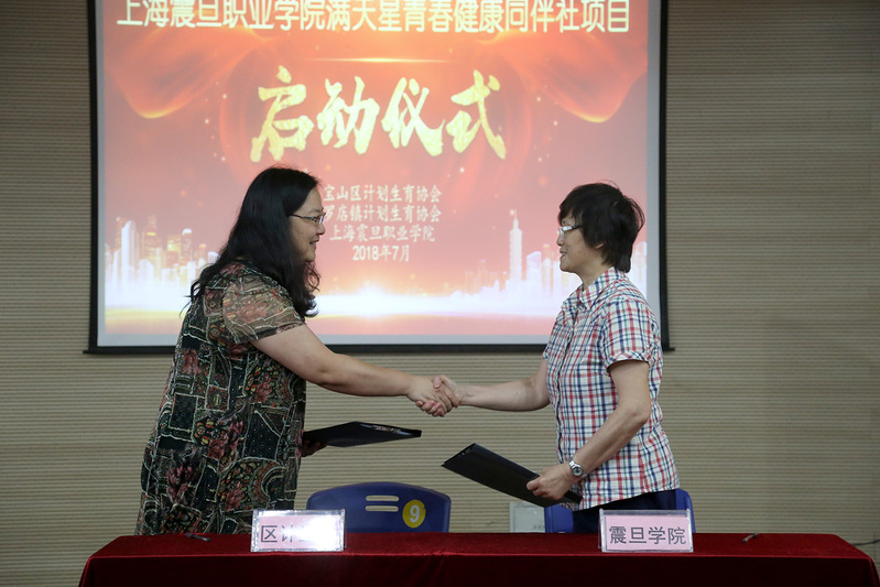 青春健康宣传教育工作,丰富学生的青春健康知识,提高学生的自我保护技能,给学生成长成才搭建一个良好的平台,宝山区计生协会、罗店镇计生协会协同上海震旦职业学院联合启动“满天星青春健康同伴社”项目。2018年7月2日,项目启动仪式暨首场培训讲座于上海震旦职业学院体艺楼实验剧场顺利举行。
